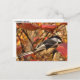 Chickadee Bird in rosa und roten Herbstblättern Postkarte