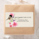 Schöner, schwarz gezapftes Vogelgesang mit Aquarellmalung mit rosa und violetten Blumen, gemalt von Jennifer Steffen, Jennes Emporium.