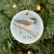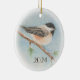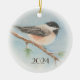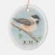 Ein bezauberndes Kichergewächse sitzt friedlich auf einem schneebedeckten Glied zwischen den fallenden Schneeflocken des Winters. Aus einer originalen Aquarellmalerei.