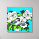 Zeitgenössische Schwarz Kappenkarte und Dogwood Blume Kunst auf einem hellblauen Hintergrund mit grünen Blätter