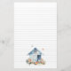 Chicken farm lined, double-sided stationery size 5.5 x 8.5 inches. Personalize this 80lb. weight, recycled paper with a name, or business at the top in dark blue, printed font. Both sides are lined and contain chicken coop and chickens design. The front also has four colorful eggs at the bottom. Use for personal or farm business correspondence. This paper can include envelopes as an option.