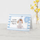Carte d'anniversaire à thème chiot pour une fille. L'âge et le nom sont facilement modifiables en ligne. La carte a une jolie illustration d'un chien avec un casquette de fête et un ballon bleu. L'arrière - plan est à rayures bleu et blanc. Il dit "J'espère que vous avez un anniversaire PAWSOME" à l'intérieur de la carte.