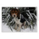 beagle assis dans la neige devant un plante de yucca