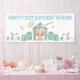 Décorez votre fête d'anniversaire sur le thème du chien de chiot avec cette adorable bannière avec un chien d'aquarelle mignon entouré de sa maison de chien, de cadeaux d'anniversaire et de ballons. Customisez le libellé avec l'éditeur en ligne.