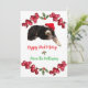 Envoyez un peu de joie en cette période de fêtes avec cette adorable carte de Noël avec Birdie le Bernedoodle, notre adorable chien de ferme, le tout habillé d'un chapeau de Père Noël rouge classique entouré de baies rouges vierges. Cette carte de Noël pour chien mignon mêle charme de la ferme à la joie festive, ce qui en fait la façon parfaite de répandre des sourires et des souhaits de vacances chaleureux. Idéal pour la famille, les amis, les collègues ou les autres amoureux de les chiens, cette carte est un choix amusant et chaleureux pour vos salutations de vacances. Customisez la typographie avec votre propre message, ou gardez le design gai comme pour une carte de Noël joyeuse et brillante qui deviendra un souvenir. Que vous fêtiez près ou loin, Birdie vous aidera à partager la magie de la saison de la façon la plus agréable possible! Ceci est téléchargeable.