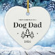 Premier Noël en tant que chien papa ornement de coeur pour les amoureux des animaux de compagnie. Élégante porcelaine céramique ornements de vacances en blanc avec lettrage noir. Avec des arbres de Noël et des étoiles.