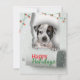 Célébrez les fêtes avec cette carte de Noël mignonne avec un adorable chien moucheté noir et blanc qui sort d'un rouleau de papier blanc déchiré. Placé dans un cadre blanc épuré et simple, avec des lumières festives de noël dans les coins, lui donnant une touche de couleur. Parfait pour les amoureux de les chiens et tous ceux qui cherchent à répandre la joie des vacances, cette carte plate est une façon délicieuse d'envoyer vos salutations saisonnières. Personnalisez les mots, la police, la couleur de police et l'arrière de la carte. Partagez l'esprit de la saison en famille et entre amis grâce à ce design fantasque et chaleureux!