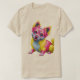La chemise est faite de tissu doux et confortable et est livré dans des couleurs vives comme le bleu clair et le vert citron. Il présente un design branché qui attire l'oeil, avec un chien mignon au centre, avec de grands yeux brillants et un sourire joyeux. Le chien est illustré dans un style artistique, mêlant des couleurs vives comme l'orange et le jaune, ajoutant une touche joyeuse et vivante à la chemise. Les manches courtes le rendent parfait pour les jours ensoleillés, ce qui en fait un choix idéal pour les amoureux des animaux ou ceux qui cherchent un complément amusant à leur garde-robe.