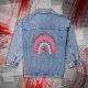 Ajoutez une touche de charme d'inspiration canine à votre garde-robe avec cette élégante veste en denim pour femmes. Doté d'un arc-en-ciel vibrant, d'une silhouette de chien élégante et de mignonettes, ce design célèbre le lien spécial entre vous et votre Valentine furry. Le style denim classique se marie parfaitement avec les tenues décontractées, ce qui en fait un complément polyvalent à votre collection. Montrez votre amour pour votre chiot avec une veste aussi intemporelle que votre amitié !