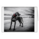 Un jeune chien Weimaraner bleu argenté et gris argenté debout sur la pelouse sans queue accostée. Le Gray Ghost est un chien de chasse d'origine élevé pour le pourcentage et la noblesse.