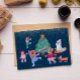 Célébrez la saison avec notre "Carte de vacances Plat jaune patinage sur glace Chiens mignons", avec une délicieuse aquarelle et illustration de gouache. Six chiens adorables, dont un caniche rose, un vieux chien de mouton anglais, des corgi, un récupérateur du Labrador et un dachshund, patinent gracieusement devant un sapin de Noël joliment décoré, capturant l'esprit joyeux de l'hiver. Placée contre un arrière - plan festif bleu foncé, cette carte de charme apporte une touche festive à vos salutations de vacances, parfait pour les amoureux de les chiens et tous ceux qui apprécient une scène de vacances fantaisiste. Partagez un peu de gaieté avec cette carte de vacances pleine de charme et remplie de chiens !