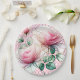 Ideal für thematische Feiern, Geburtstage, Babyduschen, etc. Rosa Chiffon-Rose auf weißen Spitzen-ähnlichen Blüten. Dieses Design passt zu den meisten Größen. Siehe dazu passende Papierbecher.