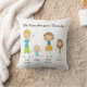 Le coussin américain de MOJO avec le chiffre personnalisable famille de bâton comprenant un papa, la maman, la fille, et le bébé sur les cercles avant et colorés impriment dessus de retour.
