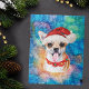 Chihuahua Breed Hund Weihnachten hat eine Aquarellfarbe eines Chihuahua mit einem roten Weihnachtshut, einem roten Weihnachtskragen und einer galaxischen Wasserfarbe.