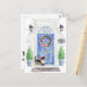 Mit unserer stilvollen Ankündigung mit einem Long Hair Chihuahua, blauer Haustür, Begrüßungsmatte, Schiefer-Schild, Topiaries und einem blumengeschmückten Set auf grauem Ziegelboden verkünden Sie Ihre neue Adresse.