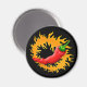Roter Chili Pfeffermagnet mit herausnehmbarem Flammenkreis.