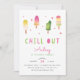 Die bezaubernde Party Einladung für die sommerliche Geburtstagsparty Ihrer Kleinen bietet Aquarellbilder in lebhaften Rosa- und Kalktönen. Personalisieren Sie Ihre Geburtstagsfeierdetails unten. Die Karten werden in solides Rosa umgeschaltet.