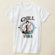Frau meditiert Grafik mit Text, "Chill Vibes" entspannend, aufgeklärtes Gefühl.