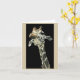 Voici l'une des girafes féminines du zoo de Sacramento. J'ai créé le dessin original en scratchboard, teinté d'encre. L'arrière - plan est bronzé sur cette carte, mais vous pouvez la changer.