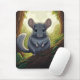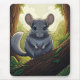A charming chinchilla sits on a tree branch surrounded by lush foliage. Sunlight streams through the canopy, creating a serene woodland scene.