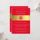 Speziell für eine chinesische Hochzeit konzipiert, enthält diese Karte das Symbol "Doppeltes Glück". Das "Double Happiness", das xi oder "hsi" auf Mandarin buchstabiert und "shuang-xi" ausgesprochen hat, ist ein bekannter chinesischer Charakter, der traditionell in chinesischen Hochzeiten als Symbol für Liebe, Glück und Glück für das neu hochzeitsfeierliche Ehepaar verwendet wird. Die Verwendung der Farbe Rot ist eine gute und beliebte Farbe in der chinesischen Kultur, symbolisiert Glück, Glück und Freude. Während die goldene Band Wohlstand und Wohlstand symbolisiert. Auf der Rückseite der Karte befindet sich auch eine goldene Band mit den Initialen des Ehepaares.