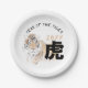 Original digitale Aquarellfarben eines Tigers von Animals Drawings. Design auf Party Papierteller mit "Jahr des Tiger", 20XX und großen chinesischen Tiger schwarz Ideogramm. Sie können das Jahr (Schriftart, Farbe, Größe und Position) ganz einfach ändern, indem Sie auf die Schaltfläche Anpassen klicken. Perfekt für das chinesische Neujahr des Tiger 2022 oder Geburtstag (Menschen geboren im Tiger Jahr).