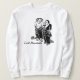Dieses Shirt zeigt einen chinesischen Dichter und seinen Sidekick in Schwarz und Weiß. Han Shan, auch bekannt als Cold Mountain, steht mit Lieferwagen, während sie das Universum betrachten. Der Text kann angepasst oder entfernt werden.