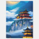 Chinesische Palast Gebäude sitzen in den Bergen unter dem Mondschein.