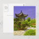 Der chinesische Tempel versteckt sich hinter grünen Bäumen mit einem schönen lila Himmel