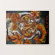 Chinesisches Jahr des Tigerpuzzlespiels, einzigartiger Entwurfstiger mit orientalischem Drachen und Tigerlilien, die sie umgeben! Zusammengefügt den Stücken Ihres chinesischen Tierkreises unterzeichnen Sie mit diesem reizenden digitalen Kunstpuzzlespiel