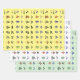 Chinesische Schriftzeichen, die gewöhnlich auf Mahjong-Spielfliesen zu sehen sind - drei Hintergrundfarben (gelb, weiß, grün).