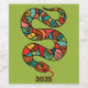 2025 Jahr - Holzschlange in chinesischem Horoskop In diesem grafischen Design, werden Sie auf eine Holzschlange, die zum Symbol des Jahres 2025 geworden ist. Der Körper ist in verschiedenen Farben gehalten, was das Diversity und den Reichtum des kommenden Jahres widerspiegelt. Von blau bis braun, schaffen diese Farben ein Kaleidoskop von Farben, die die Vielfalt und Nuancen des Lebens repräsentieren. Der Körper der Schlange trägt die Aufschrift "2025", die die Relevanz dieses Symbols im neuen Jahr unterstreicht.