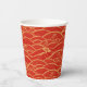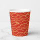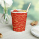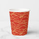 Schöner Papierbecher mit goldenen Blume und traditionell chinesischem Wellenmuster auf rotem Hintergrund. Ideal für das chinesische Party im neuen Jahr.