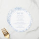Entrez dans une élégance intemporelle avec notre carte de menu mariage ronde printemps/été bohème rustique, qui présente un motif chichoiserie délicieux dans des tons bleu clair apaisant. Améliorez votre expérience culinaire mariage avec cet ajout sophistiqué, conçu pour apporter un sentiment de raffinement à votre célébration. Parfait pour les thèmes rustiques, bohèmes et mariages extérieurs, cette carte de menu prépare le terrain pour un événement inoubliable. Explorez la beauté de ce magnifique détail mariage et faites de votre journée spéciale un moment inoubliable.
