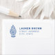 Diese Rücksendeadressen-Aufkleber verfügen über eine blau-weiße Ingwerjar. Ihr Name und Ihre Adresse sind in einem blauen, serifenlosen Schriftart auf einem hellen, weißen Hintergrund.