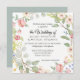 Ein Kranz aus Blume und Blattwerk, gemischt mit Beeren, umrahmt Ihren Hochzeitstext. Die Rückseite hat einen silbernen Salbei, sanft gedämpfte, graue Farbe (die sich ändern lässt) mit einer Herzform, die aus den gleichen Blume wie die Vorderseite entstanden ist. Ein komplettes Set von passenden Produkten steht zur Verfügung. Copyright, Audrey Jeanne Roberts.