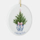 Dieser Weihnachtsbaum hat einen blauen und weißen Chinoiserie Topf und einen rosa Bogen. Sie können mit einem Namen personalisieren.