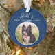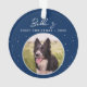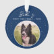 Collie Dog Photo Ornement de Noël avec chiot Première Frontière Collie Dog. Écriture blanche tendance sur un arrière - plan bleu foncé avec des flocons de neige. Photo personnalisée dans un cadre rond. Ajoutez votre photo de chien, nom et année.