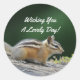 Auf diesem runden Aufkleber ist das niedliche Foto eines Chipmunk, der auf einem Log mit der Meldung "Wishing You A Lovely Day!" sitzt. Ideal für diese speziellen Mailing-, Scrapbook-, Dekorations- und Chipmunk-Fans!
