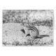 Eine Schwarz-Weiß-Skizze mit einem nahen Foto eines Chipmunk auf dem Boden. Das ist einer der Chipmunks, der auf einem Campingplatz in Ticonovera, NY wohnt. Dieses Bild wurde von Debbie Quick of Debs Creative Images aufgenommen. Weitere Fotos von Debbie finden Sie auf ihrer Website unter: www.debscreativeimages.com