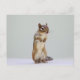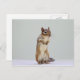 Foto eines Chipmunks stehend auf seinen Hinterbeinen mit seinen Vorderpfoten nah zu seiner Brust. Sie können sehen, dass der Chippie rückwärts gestreift ist und flauschiger Schwanz ist. Der Hintergrund des Fotos ist weiß. Dies ist ein kleines Chipmunk-Bild, das leicht angepasst und auf vielen verschiedenen Foto-Produkten gedruckt werden kann.