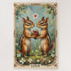 This charming vintage postage stamp design features two striped Chipmunks standing upright, one shyly presenting the other with a single, heart-shaped acorn tied with a red ribbon. A sweet, miniature Valentine's Day design.