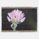 Das schlichte, dramatische Kunstwerk von ZoeSPEAK auf diesem Throw Blanket ist Zoes Originalfoto einer blühenden Pflanze von Hühnern. Das Foto in der Nähe ist mit einer hellen Lavendel-Blume über einem hellbläulich-grünen röhrenförmigen Stamm ausgestattet. Der dunkle Hintergrund zeugt von der Schönheit dieses köstlichen Krauts.