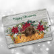 L'avant de cette carte de voeux de vacances amusante a une image délicieuse d'un petit chiot au chocolat Labrador Retriever dans un panier en osier. La corbeille est décorée de bouquets de fleurs poinsettia. Le texte personnalisable au-dessus de l'image dit "Joyeux Noël" en écriture verte. Tout est placé sur un arrière - plan rustique en bois gris. L'intérieur contient deux champs de texte supplémentaires que vous pouvez customiser comme bon vous semble.