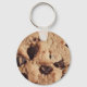 Ein Schlüsselanhänger, der wie ein Schokoladenkeks aussieht.