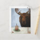 Ein schokoladenfarbener Elch bereitet sich nach dem Feiern auf Schokoladenmousse vor