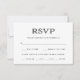 Ces cartes de réponse de RSVP de mariage simples mais modernes et élégantes présentent une typographie noire classique sur fond blanc, pour un look minimaliste qui coordonnera avec presque tous les types d'invitation de mariage. Il y a de la place pour que vos invités sélectionnent leur choix de repas de dîner ou d'entrée.