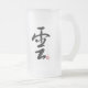Ce brasserie possède une élégante calligraphie japonaise qui dit 'rosée' d'un côté et 'nuage de l'autre. Ça ferait un cadeau classe pour un type qui s'intéresse au Japon. La calligraphie a été peinte à la main avant d'être scannée et placée sur le stein.