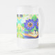 Mug de bière en verre dépoli avec la peinture animale de Louis Wain Cat Flower Eyes (1860-1939). Un chat arc-en-ciel grince largement. Des fleurs bleues recouvrent ses yeux. Un cadeau merveilleux pour l'art amoureux des chats et anglais.