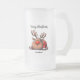 Celebrate the holiday season with this adorable "Merry Christmas" beer mug featuring a charming, hand-drawn reindeer taking a cozy nap. The playful design captures the festive spirit, making it a perfect addition to your Christmas celebrations or a delightful present for any beer lover. Its unique artwork and cheerful message add a touch of whimsy to your drinkware collection, ensuring a memorable holiday toast. Enjoy your favorite beverages with this heartwarming and festive mug that brings smiles all around.